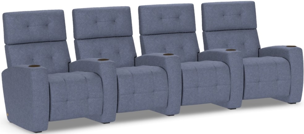 The 20-inch footrest -- fully upholstered -- is several inches longer than the industry standard. Create your perfect configuration with options made to fit every space. Featuring our Infinity System™, two glamorous Comfort Theatre styles combine inviting plushness and an infinite number of reclining positions for the ultimate media-watching experience. Articulating headrests allow you to choose your ideal position, while stainless steel cup holders have LED lights that turn on and off with a simple touch.