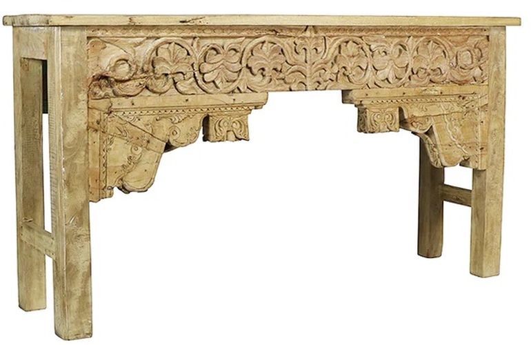 The hand-craved detail in the front of the Architectural Salvage Console Table is striking. Made of solid vintage wood that is sandblasted and bleach finished, the Architectural Salvage Console Table is a striking entry or accent table.Read More