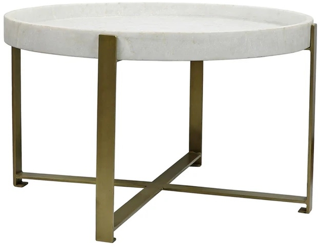 Keep it stylish and simple with the elegant Bella Tray Table. This room accent table has been a white marble top and a crisscross, metal stand with an antique-brass finish.Read More