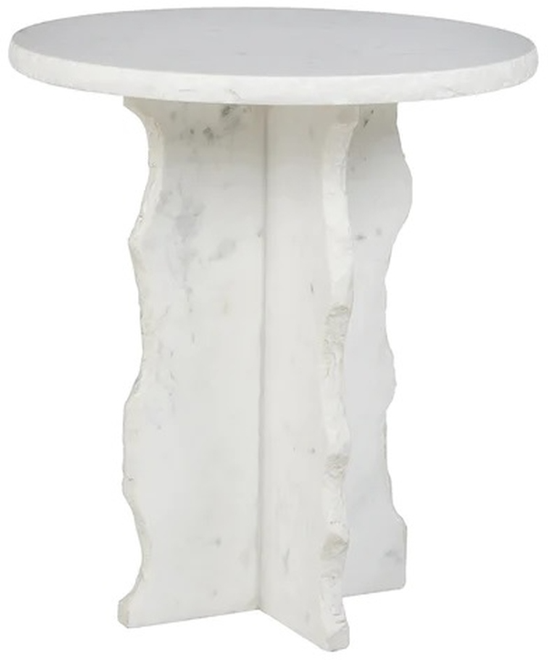 The undulating lines of the x-shaped base of the Urban Marble Side Table provide a sense of movement, The wavy-edged legs have a smooth surface but are left raw on the edge for added texture. The round white-hued marble tabletop is antique-finished and 20 inches in diameter.Read More