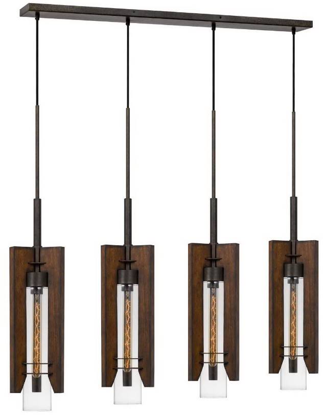 60W X 3 Almeria wood/glass 4 light pendant fixture (Edison bulb not included)