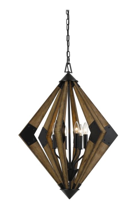 31.25" height metal chandelier in smoky wood finish