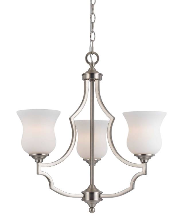 Add an eye-catching look to your living room or bedroom decor with this Barrie Metal 3-Light Chandelier. Brighten your home with 22" Inch three light chandelier in brushed steel with durable metal construction.Read More