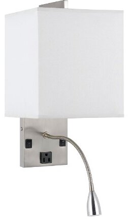 This Wall Lamp adds an eye-catching look to your living room or bedroom decor. The brushed steel finish wall lamp features a LED gooseneck reading light. Make a bold statement by incorporating this lamp into your home.Read More