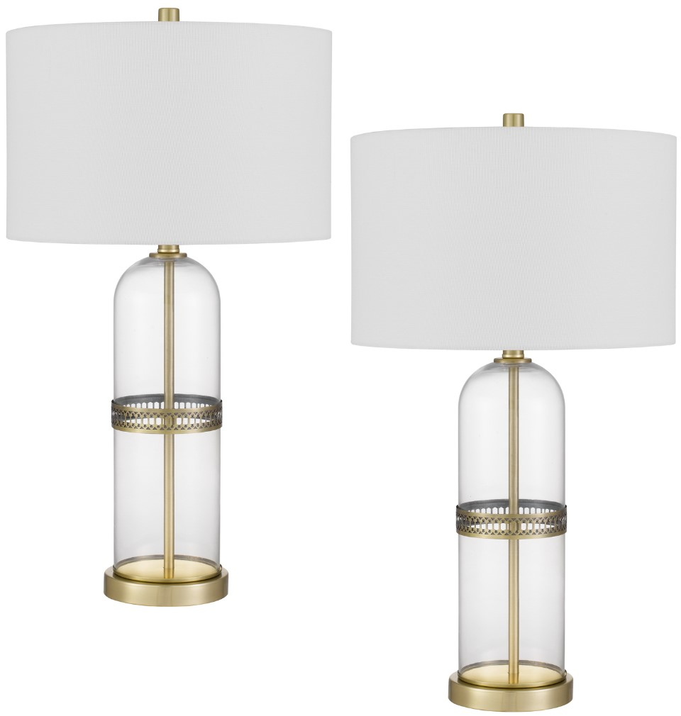 Illuminate your space with this bullet shaped glass lamp. It features a clear glass body with Antique Brass finish. Perfect addition to living room, office, bedroom, or entryway. The light spreads gentle adding a cozy atmosphere to any space in your home.Read More