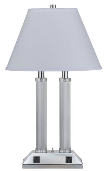 Add an eye-catching look to your living room or bedroom decor with this Desk Lamp from Cal® Lighting. The chrome and white color lamp features a two bulb lamp.Read More