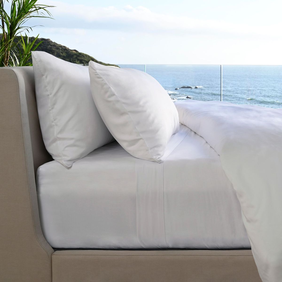 Experience the comfort and quality of a beach resort in your own home with our Resort Bed Sheets made from soft and sustainable viscose. These sheets feature a premium sateen finish and advanced box-stitch seams, providing comfort and craftsmanship that you can depend on sleep after dreamy sleep. Our viscose fabric naturally regulates sleep temperatures, letting you sleep cooler in the summer and warmer in the winter. It also repels odors naturally without any harmful chemicals, so you can wake up each morning feeling fresh and clean. Start sleeping, living, and feeling every day like you do on vacation with these luxuriously soft bed sheets. Also, at no risk to you, enjoy free shipping anywhere in the contiguous U.S.