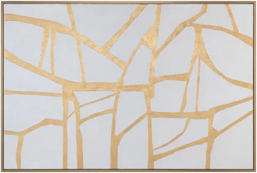 The intricate lines create a mesmerizing pattern that adds depth and dimension to the artwork, making it a true statement piece. To enhance the painting's beauty and elegance, it comes complete with a stunning gold gallery frame. The frame adds a touch of glamour and sophistication to the artwork, making it ready to display in any space.