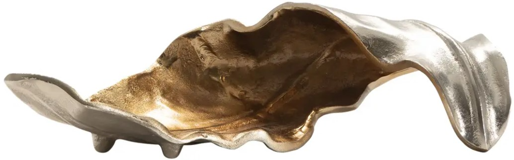 The leaf is curled over to allow you to see both the gold and silver finish of the sculpture when displayed