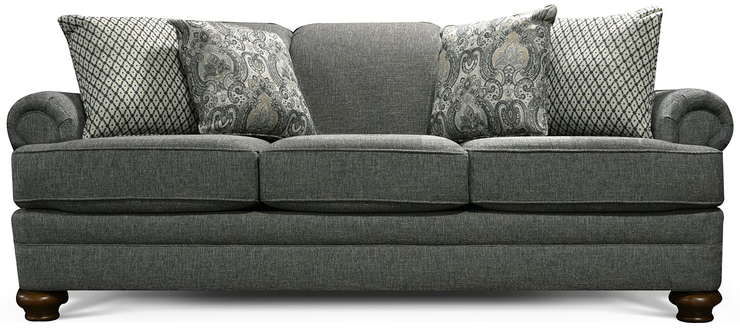 Satisfy your classic taste with our charming Reed collection. With its tight scroll back, rolled arm, turned bun leg, and bided front rail, you've got the makins of a living room masterpiece. Add an optional antique brass nailhead trim for added flair. The Reed collection features a sofa, loveseat, chair, ottoman, and sectional.