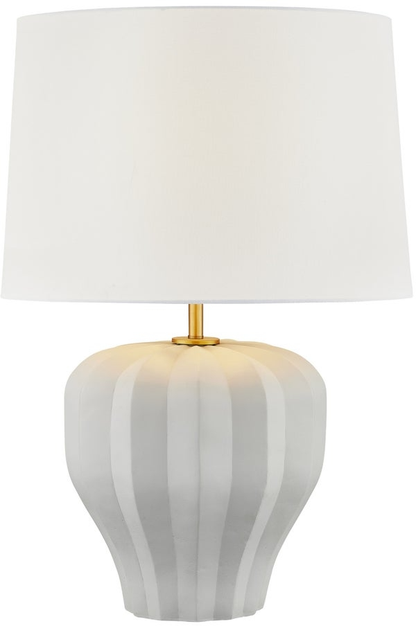 Forty West Allison Gray Table Lamp features drum shape shade, white color, and gray base.Read More