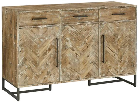 Ashton console containing a weathered look, this console has a zig zag pattern across is doors and straight iron rods for the handles and base that creates an attractive look.Read More