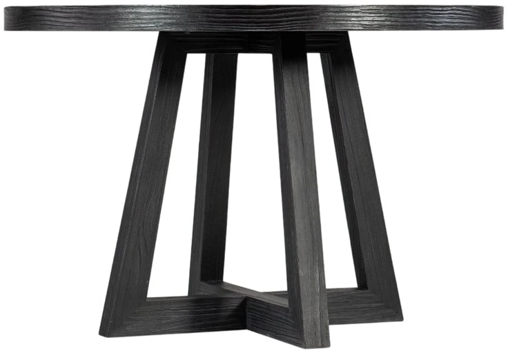 In a chunky and chic silhouette, the Chapman round dining table is casual with a modern twist and features a charred black finish on pine veneers, a Japanese technique to achieve the look of burnt wood. Will accommodate up to 6 chairs.Read More