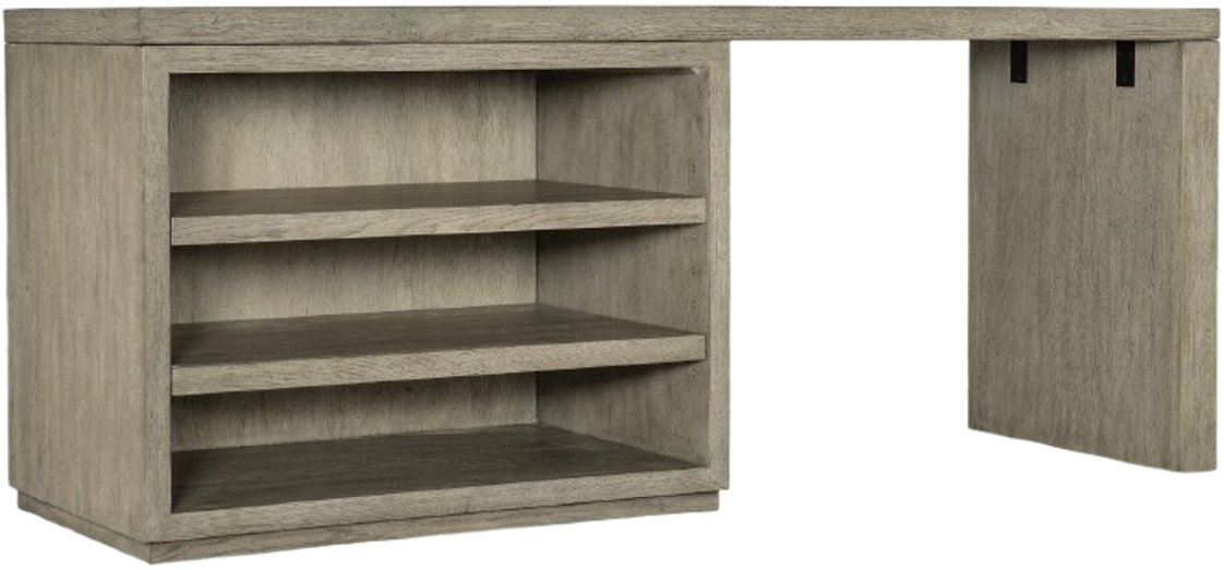 Capturing the essence of nature’s organic color palette on a clean-lined, simple silhouette, the Linville Falls desk is crafted of oak veneers with a soft smoked gray mink finish. The 72-inch wide top is flanked on one side by a leg end panel and on the other by an open desk cabinet.Read More