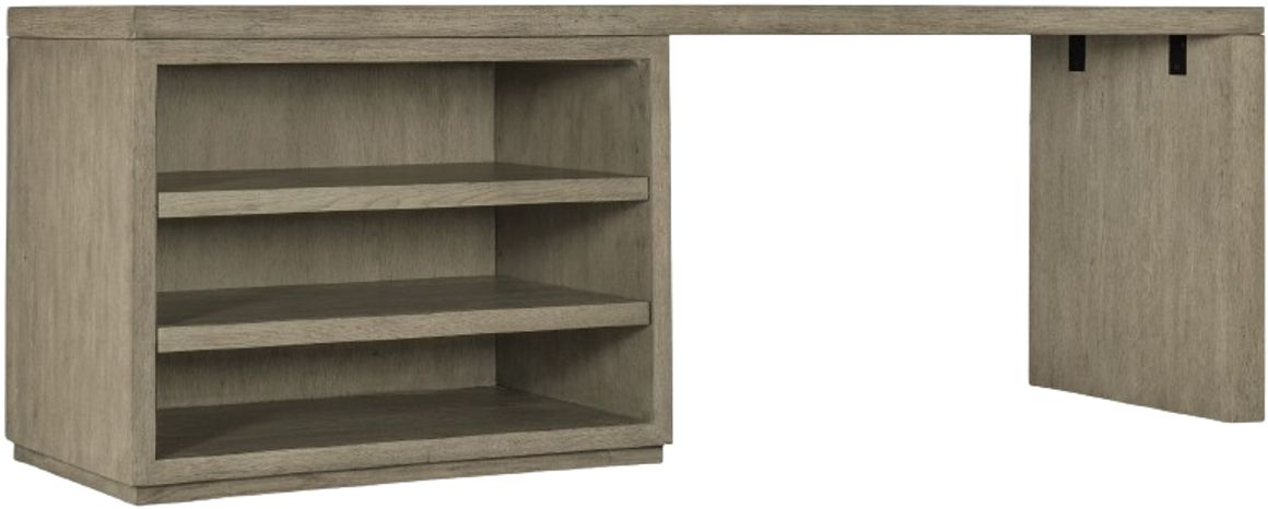 Capturing the essence of nature’s organic color palette on a clean-lined, simple silhouette, the Linville Falls desk is crafted of oak veneers with a soft smoked gray mink finish. The 84-inch wide top is flanked on one side by a leg end panel and on the other by an open desk cabinet.Read More
