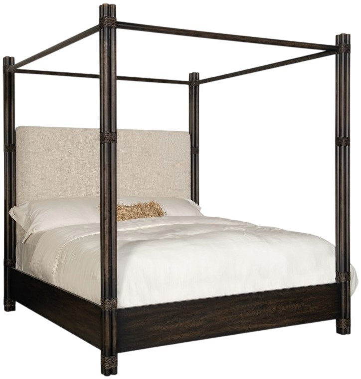 Create a personal oasis inspired by tropical getaways with the Retreat pole rattan upholstered bed with canopy. The dramatic bundled pole-designed motif with rope accents creates a laid-back luxury, complemented by the side rails crafted of oak veneers and finished in the black sand finish.Read More
