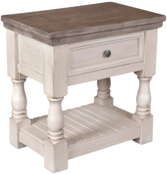 Complete your bedroom idea with this Bay View Nightstand from Horizon Home®. Shown in an off-white finish with one drawer, this nightstand will definitely add style to your bedroom. Also available in a gray finish.Read More
