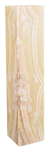 A 59" tall pedestal lamp with a 12" square base and a vertical column of natural yellow onyx. The translucent stone shows soft white and honey-yellow veining, glowing warmly when illuminated.Read More