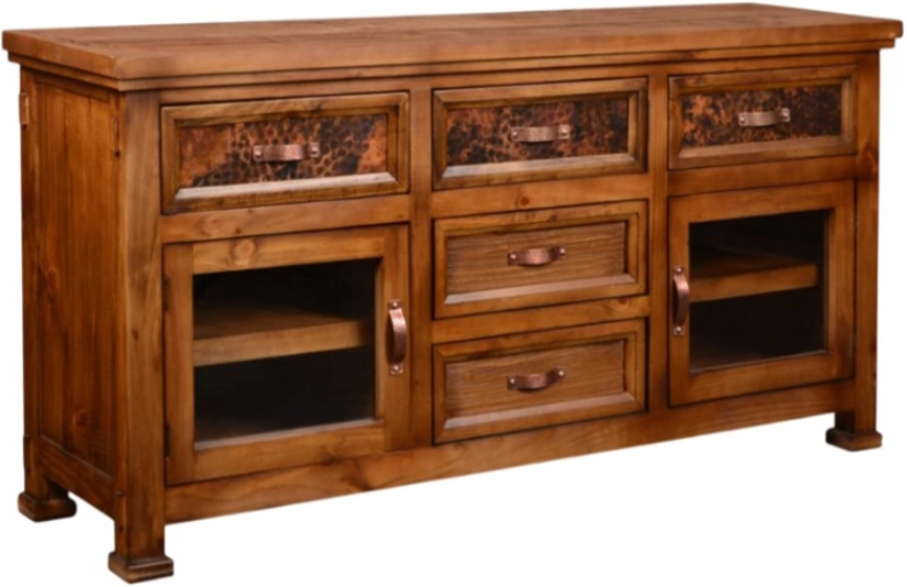 The Horizon Home® Copper Canyon TV Console is a striking blend of rustic craftsmanship and modern functionality. Five spacious drawers and two cabinet doors offer generous storage for electronics, media accessories, and more, while built-in wire management at the rear ensures a clean, organized setup.Read More