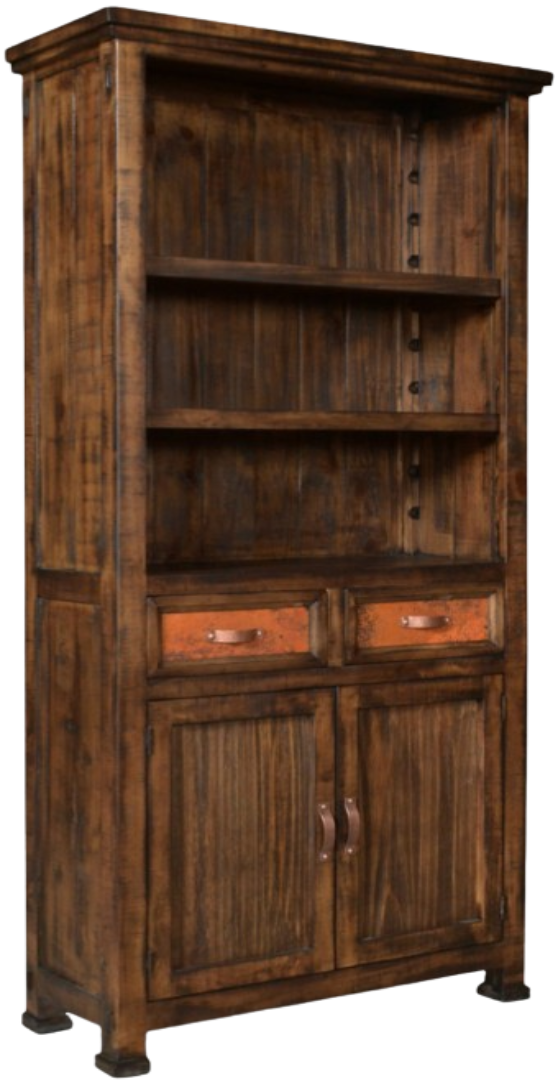 Showcasing artisan craftsmanship and rustic elegance, the Copper Canyon bookcase is constructed from solid wood for lasting strength and character. The hand-hammered, reclaimed copper accents add a rich, timeworn texture, while the sandblasted drawer fronts highlight the natural wood grain for a weathered, organic look.Read More