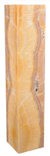 A 59" tall pedestal lamp with a 12" square base and a vertical column of natural yellow onyx. The translucent stone shows soft brown and honey-yellow veining, glowing warmly when illuminated.Read More