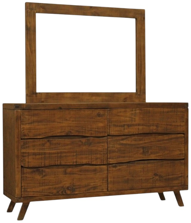 The Nativa dresser and mirror set combines rustic charm with everyday practicality. Its warm brown finish highlights natural wood tones, while six spacious drawers provide ample storage for clothing and essentials. Paired with a coordinating mirror, this set enhances bedroom decor with timeless style and functional organization.Read More