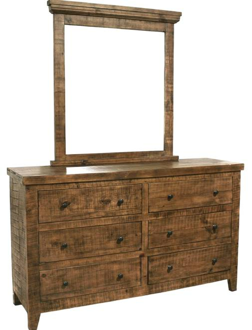 The Pine Grove Brown Dresser and Mirror set exudes rustic charm and functionality. The dresser offers ample storage with multiple drawers, while the accompanying mirror adds depth and style to your bedroom decor.Read More