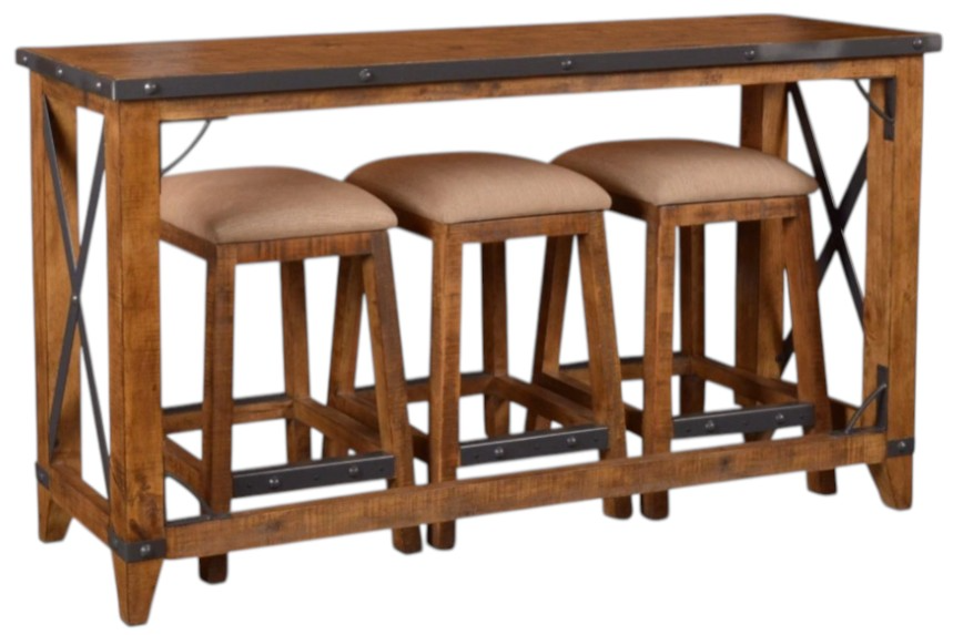 Set includes 1-piece counter height console and 3-piece 24" counter height stool