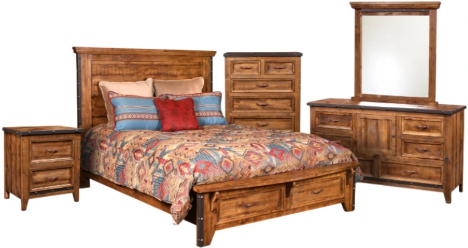 The Horizon Home® Urban Rustic 5-Piece Queen Bedroom Set includes a bed, chest, nightstand, a dresser, and a mirror. Crafted from durable materials, this set offers a timeless, warm finish that enhances any bedroom. The pieces are designed for practicality, providing ample storage and comfort.Read More