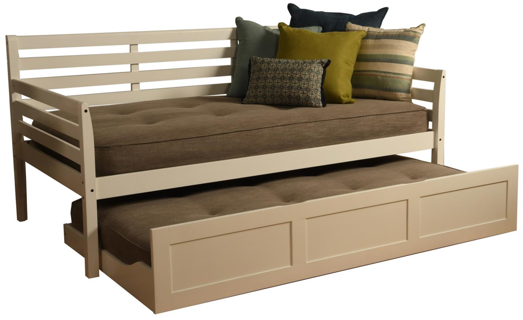 The boho daybed boasts clean lines and attractive angles. The white finish on the bed and linen stone brown mattresses will blend in with many color schemes in your home. The additional trundle unit is perfect for guests and sleepovers. Whether you're using it every day, or just on occasion, this daybed will hold up to your lifestyle.Read More