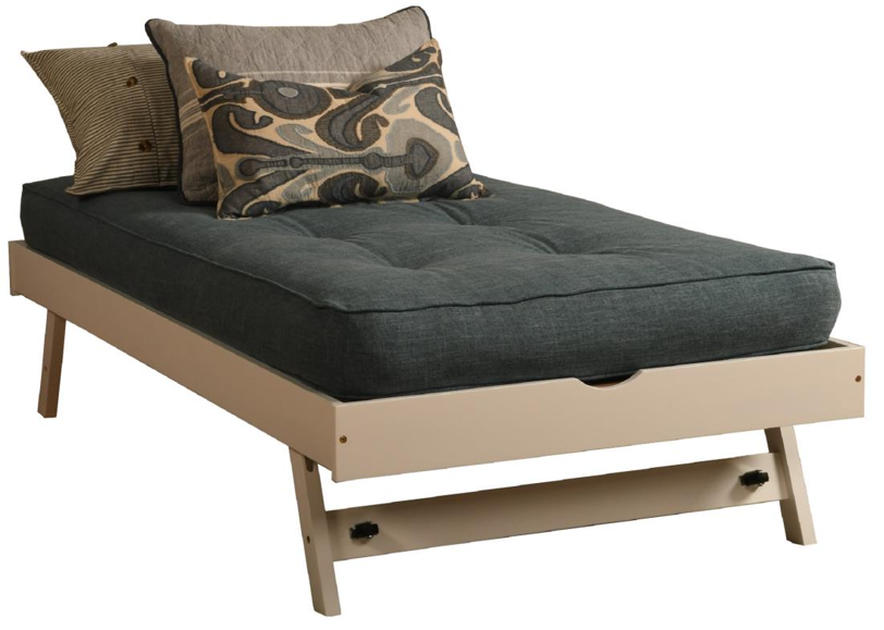 Twin-size pop up bed with linen stone mattress