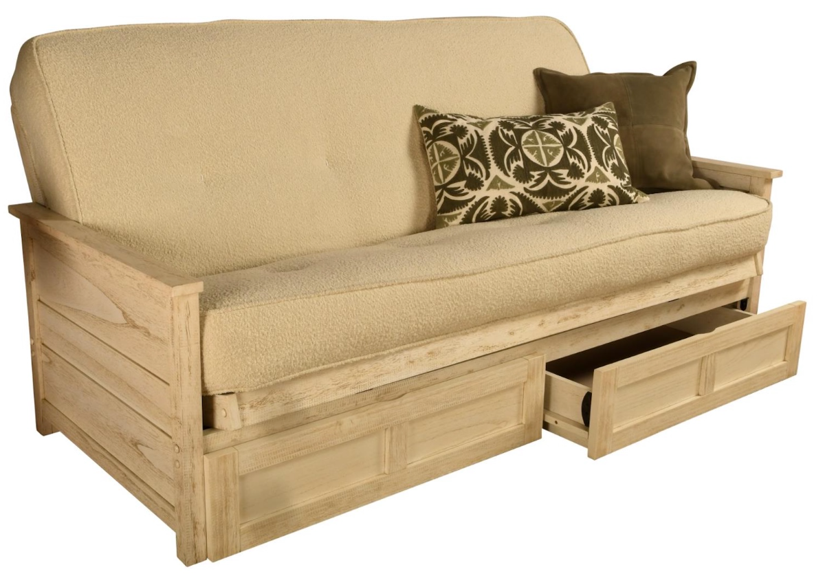 Experience ultimate comfort with the Kodiak Furniture Lexington Futon. Featuring a weathered white finish and canton cream upholstery, this full-sized futon includes a cozy mattress and convenient storage drawers, making it perfect for stylish living spaces and maximizing functionality.Read More