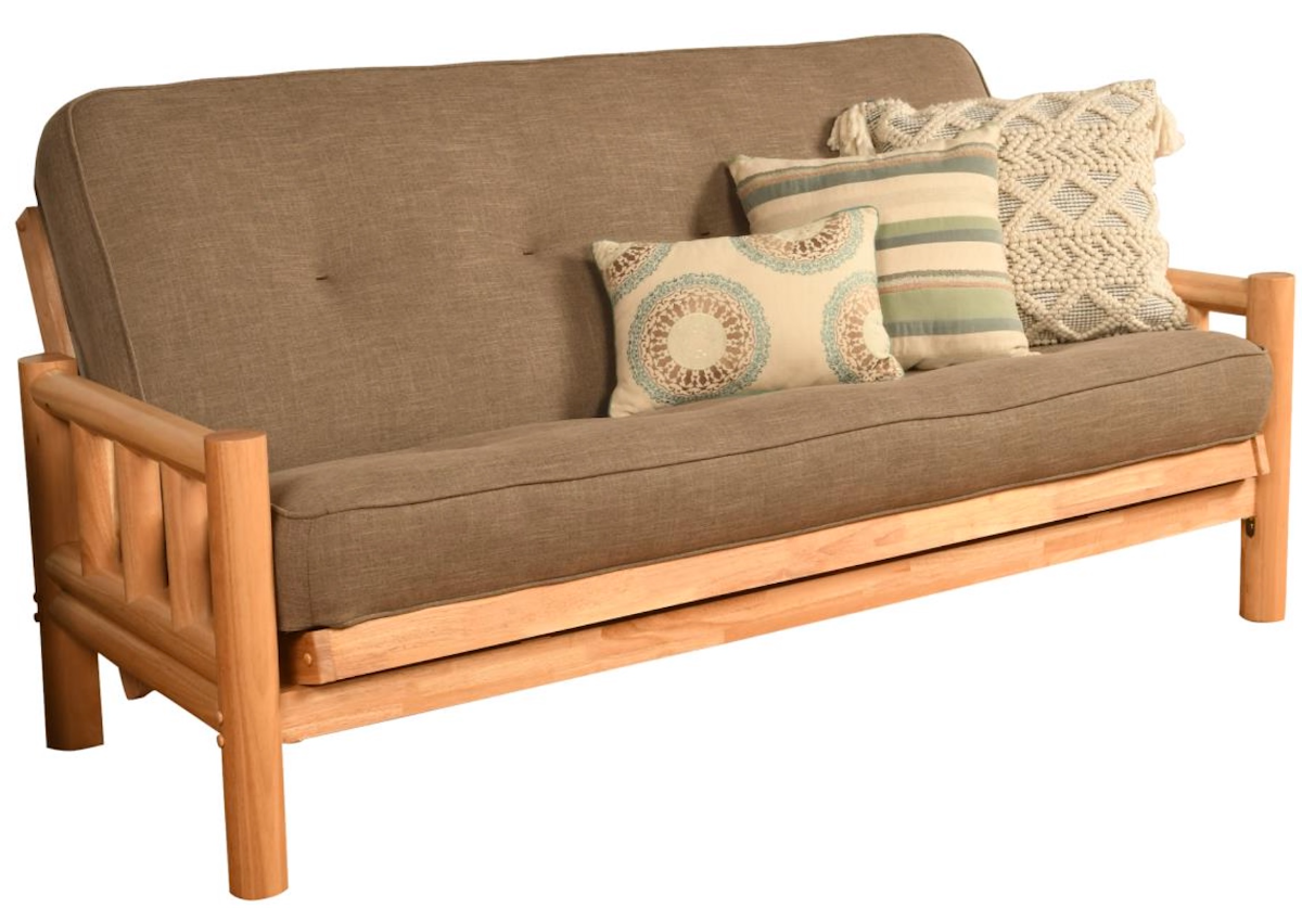 The timeless look of the round, log cabin style, solid hardwood arms of this full-size futon frame is a perfect fit in your mountain retreat, family room, or the man cave in your traditional or rustic style home decor. With its beautiful natural wood grain finish, this futon is sure to be a lasting treasure.Read More