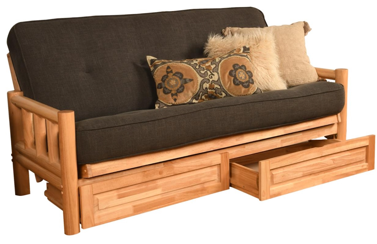 The timeless look of the round, log cabin style, solid hardwood arms of this full-size futon frame with storage drawers is a perfect fit in your mountain retreat, family room, or the man cave in home decor.Read More