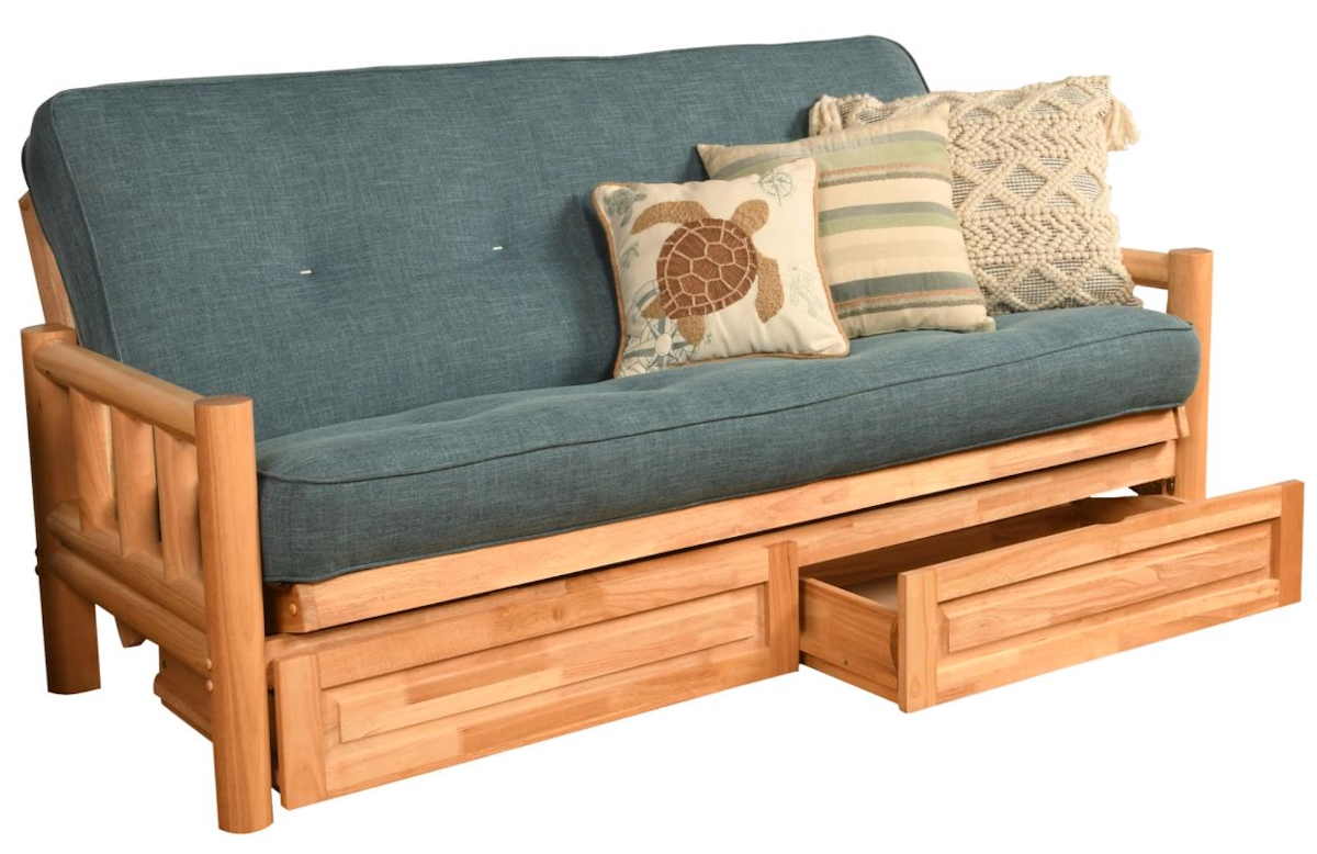 The timeless look of the round, log cabin style, solid hardwood arms of this full-size futon frame with storage drawers is a perfect fit in your mountain retreat, family room, or the man cave in your home decor.Read More