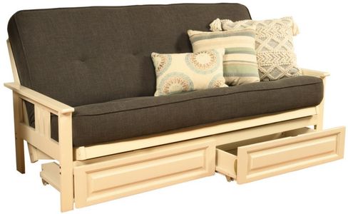 The mission style design on the arms of this solid wood futon frame cradle your mattress for sleeping comfort - pillows and sheets stay put when using it as a bed. This easy-to-adjust frame comes in an array of colors and the comfort of sofa height seating.Read More