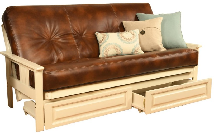 The mission style design on the arms of this solid wood futon frame cradle your mattress for sleeping comfort - pillows and sheets stay put when using it as a bed. This easy-to-adjust frame comes in an array of colors and the comfort of sofa height seating.Read More