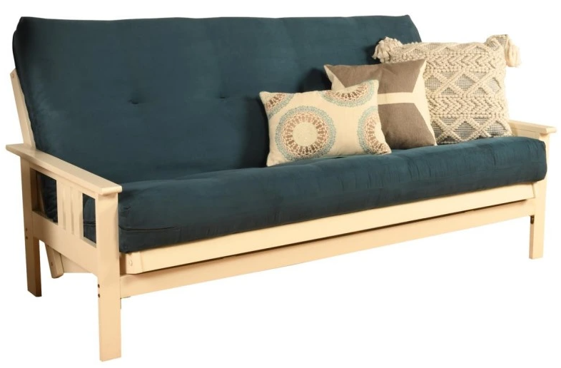 The mission style design on the arms of this solid wood futon frame cradle your mattress for sleeping comfort - pillows and sheets stay put when using it as a bed. This easy-to-adjust frame comes in an array of colors and the comfort of sofa height seating.Read More