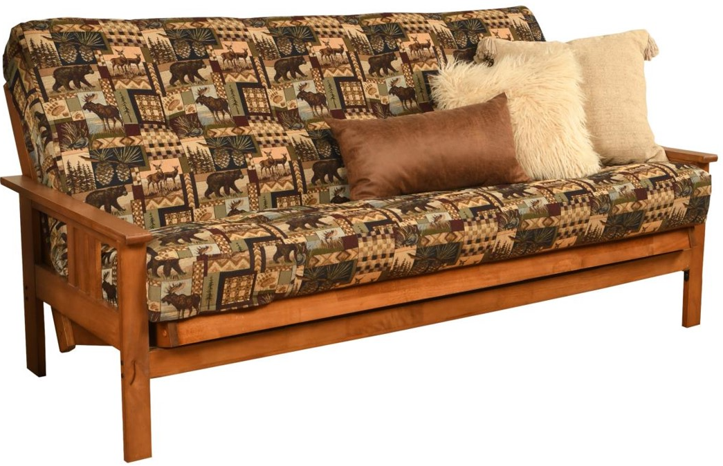 The mission style design on the arms of this solid wood futon frame cradle your mattress for sleeping comfort -- pillows and sheets stay put when using it as a bed. This easy-to-adjust frame comes in an array of colors and the comfort of sofa height seating.Read More