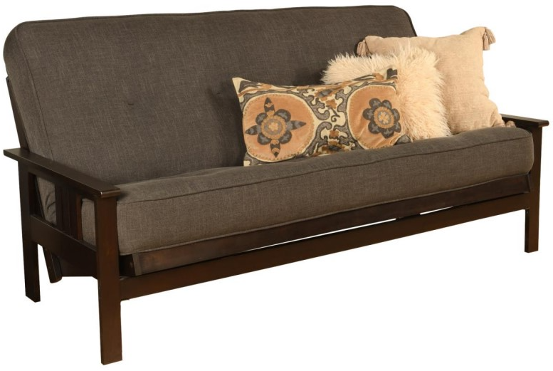 The mission style design on the arms of this solid wood futon frame cradle your mattress for sleeping comfort - pillows and sheets stay put when using it as a bed. This easy-to-adjust frame comes in an array of colors and the comfort of sofa height seating.Read More