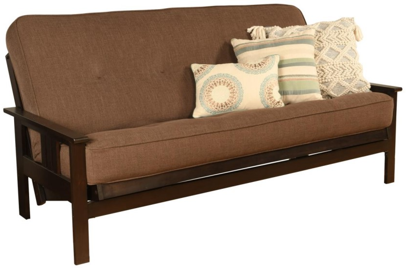 The mission style design on the arms of this solid wood futon frame cradle your mattress for sleeping comfort - pillows and sheets stay put when using it as a bed. This easy-to-adjust frame comes in an array of colors and the comfort of sofa height seating.Read More