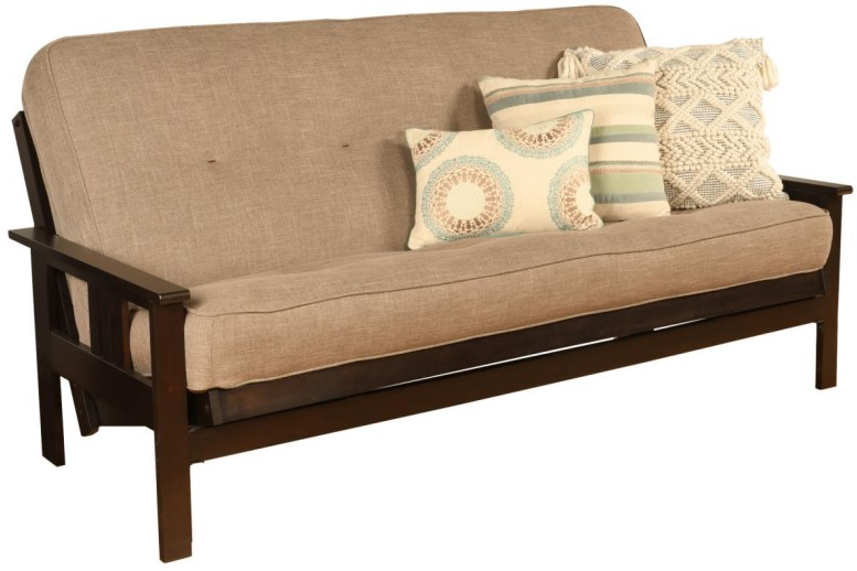 The mission style design on the arms of this solid wood futon frame cradle your mattress for sleeping comfort - pillows and sheets stay put when using it as a bed. This easy-to-adjust frame comes in an array of colors and the comfort of sofa height seating.Read More