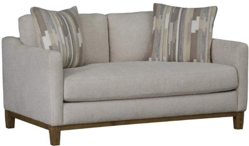 The Cloud Love Seat offers a sleek, adaptable design perfect for contemporary spaces. This love seat features a single plush cushion, a sturdy wood base, and includes contrasting throw pillows for an added touch of elegance. Enhance your living room or great room with its refreshing style.Read More