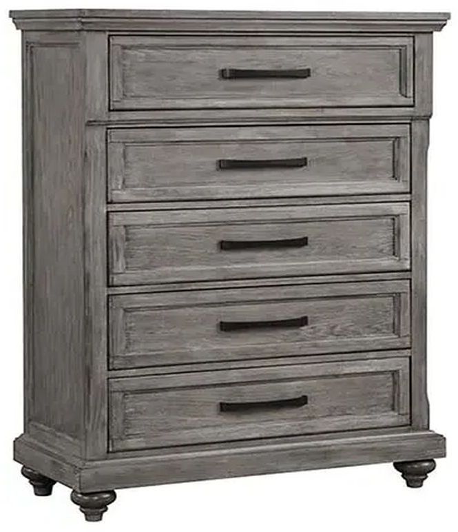 Linsey's traditional style is blended with an updated rustic, wire brushed finish to create something fresh and new. The light heather gray color brightens the room and radiates warmth and relaxation, while the extra detail on the sleigh bed headboard makes this collection a must have.Read More