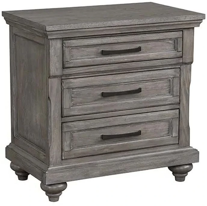 Linsey's traditional style is blended with an updated rustic, wire brushed finish to create something fresh and new. The light heather gray color brightens the room and radiates warmth and relaxation, while the extra detail on the sleigh bed headboard makes this collection a must have.Read More