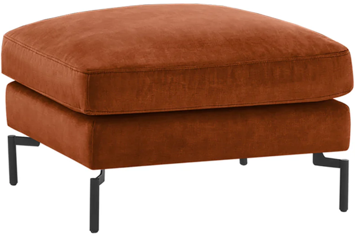 Enhance your living space with the Tribeca ottoman, a masterpiece of modern design. Upholstered in sumptuous velvet spice and supported by sleek metal legs, this ottoman exudes sophistication and style. Built with a sturdy wood frame and resilient foam cushions, it promises both comfort and durability.Read More