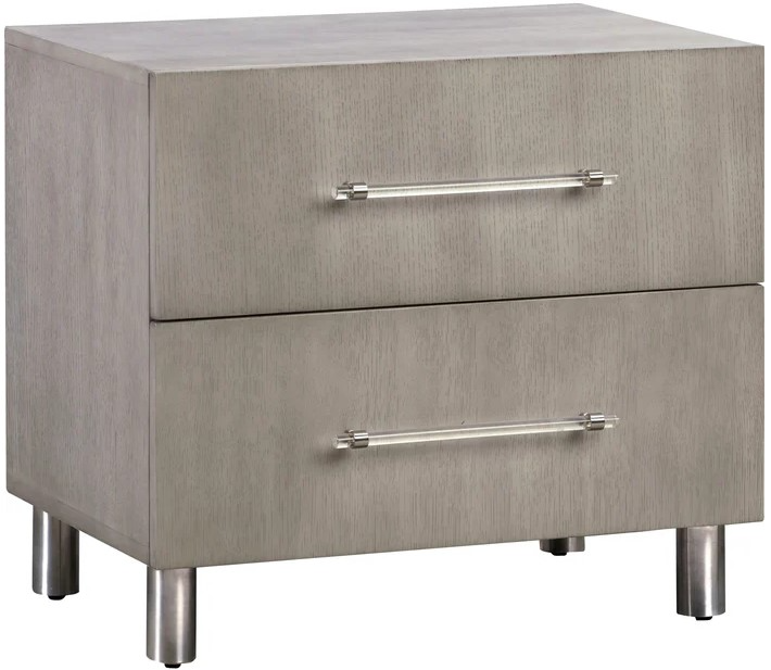 Chic and smart. Made of high-quality Oak veneer, the Argento collection is washed with a Misty Grey Oak finish that showcases the unique grain pattern inherent in the timber. Deep drawers feature elegant pulls made of acrylic and brushed stainless steel while the headboard's vertical fluting provides a distinctive focal point.Read More