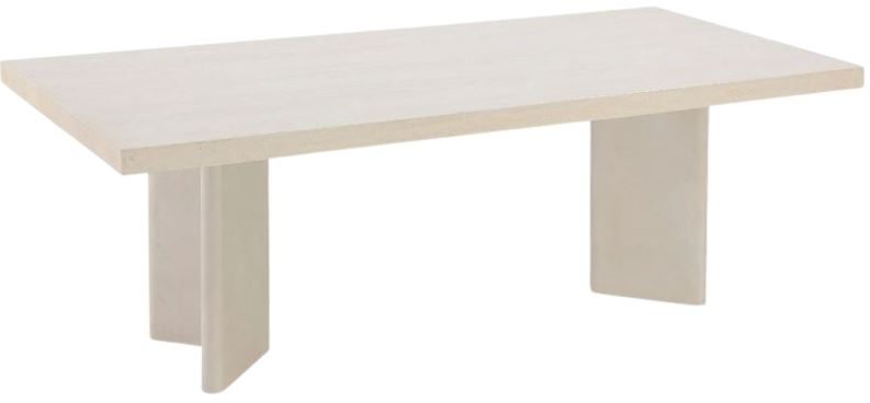 Table base is made from engineered wood with an ivory cement coating for an earthy, textured look