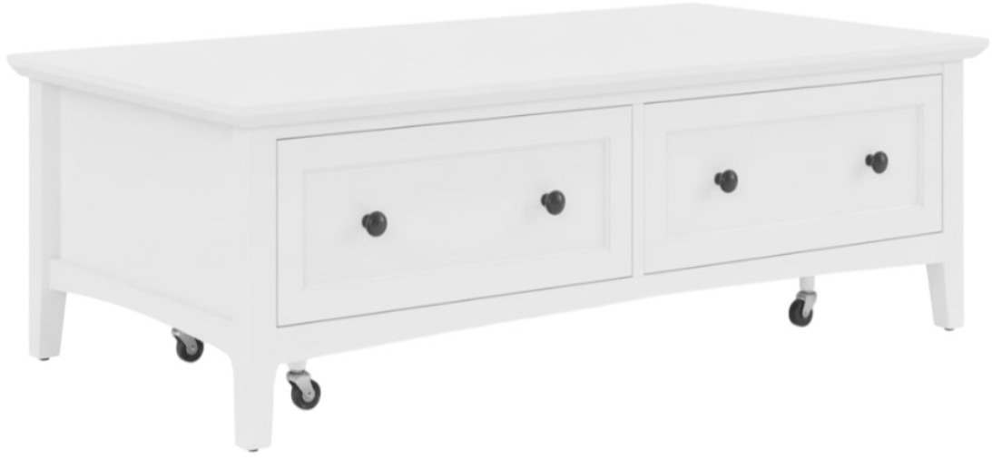 The Grace coffee table offers a blend of classic design and modern appeal, featuring a wide profile with two functional storage drawers. This transitional piece is constructed from wood, complete with black stepped knobs for an elegant contrast.Read More