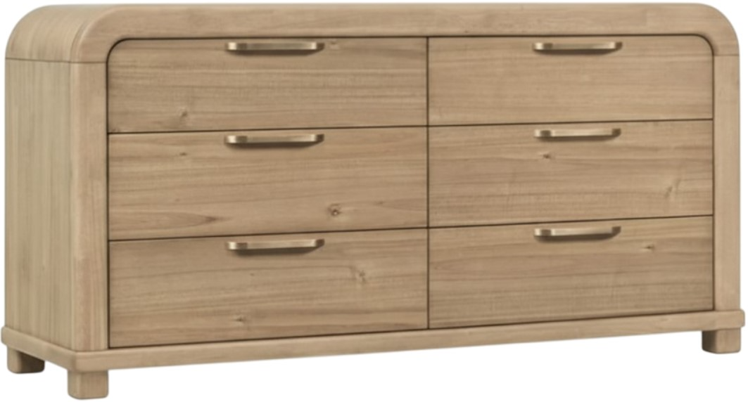 The Kione dresser in Lioness, part of the Modus Furniture Kione collection, showcases a globally-inspired, modern design. Crafted from Acacia wood, the wide, horizontally-oriented dresser features softly rounded corners and six spacious drawers.Read More